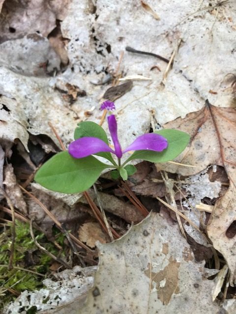 Cold day. Ter walks in woods. Little purple flower Brightens and warms her heart and soul! Precious!
