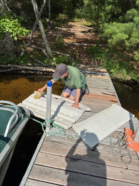 Wash back deck. Swim in wind blown lake.