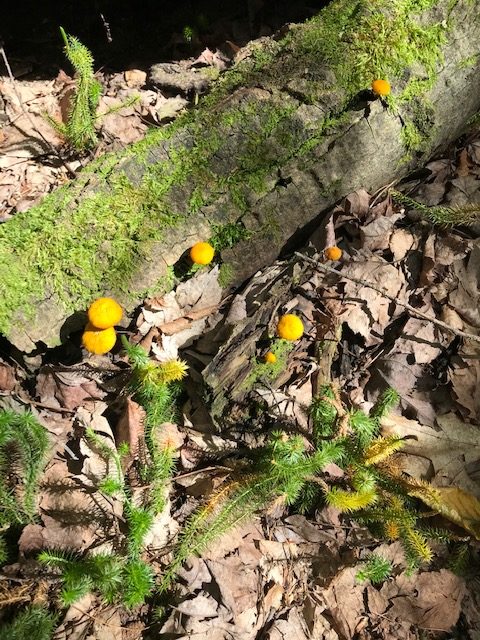 Mushrooms Shelf fungi found While walking on woods path. Yellow-orange, white, pink and greenish ! Wild gems !!!